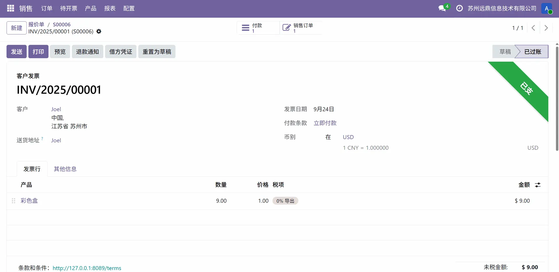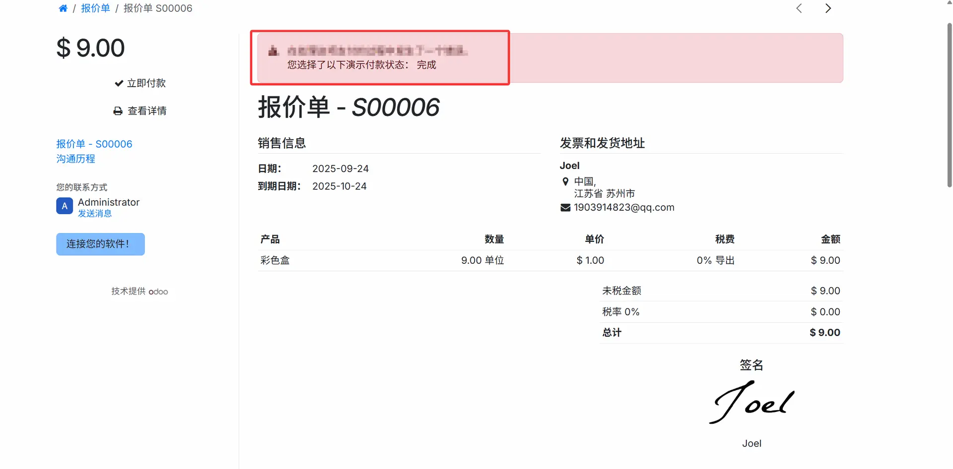 通过 Odoo 19 销售模块,企业可大幅简化 “付款后自动发票” 的流程:只需提前配置自动发票功能、产品开票原则及客户门户权限,客户完成线上签名与付款后,系统会自动触发发票生成,无需人工干预。这种自动化流程不仅提升了发票效率,还能减少人为误差,助力企业优化财务流程,推动销售业务增长。