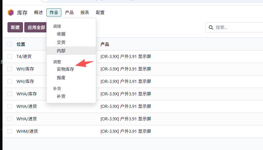 - 创建新的库存调整单
