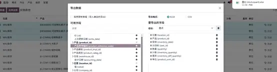 - 选择需要导出的字段(产品、位置、日期、数量、盘点数量等)