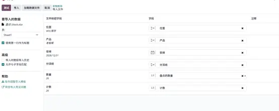 通过 Excel/CSV 批量导入期初库存(Odoo 19)