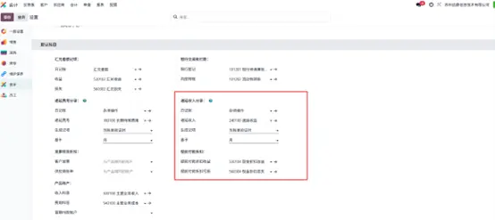 财务设置下设有默认科目区域,该区域展示企业所有默认会计科目,下图即为递延收入相关分录的展示界面。