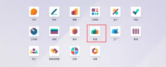 首先,在 Odoo 19 主界面中选择 生产(Manufacturing) 模块。
