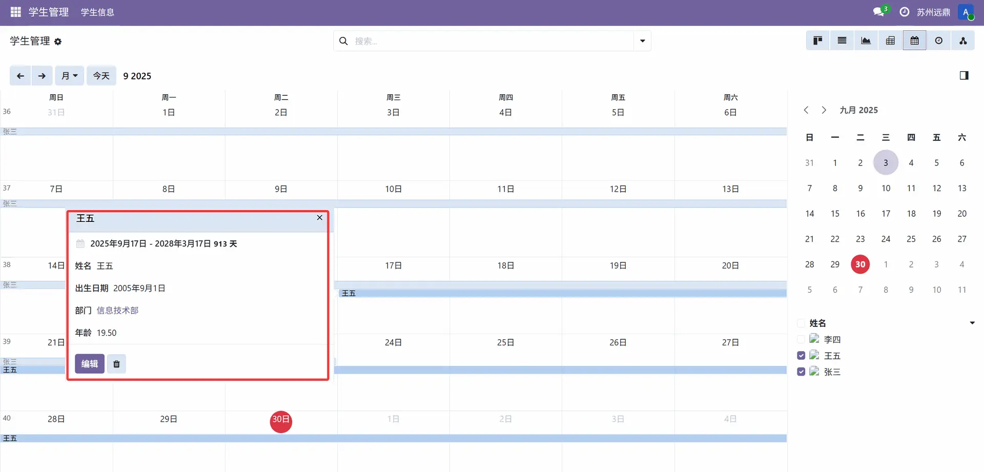 在 Odoo 19 中,日历视图是管理和可视化基于时间数据的强大界面,常用于约会、截止日期、任务、会议等日程安排场景。它提供了直观的图形化布局,可按日、周、月展示记录,在项目、销售、CRM 等模块中尤为实用。其核心功能包括灵活的日程安排、高效的资源管理工具、与其他 Odoo 应用的集成能力、丰富的自定义选项以及移动设备访问支持。无论是销售团队、项目经理还是资源协调员,Odoo 19 的日历视图都能提升日程安排效率,助力高效时间管理,增强组织整体生产力。