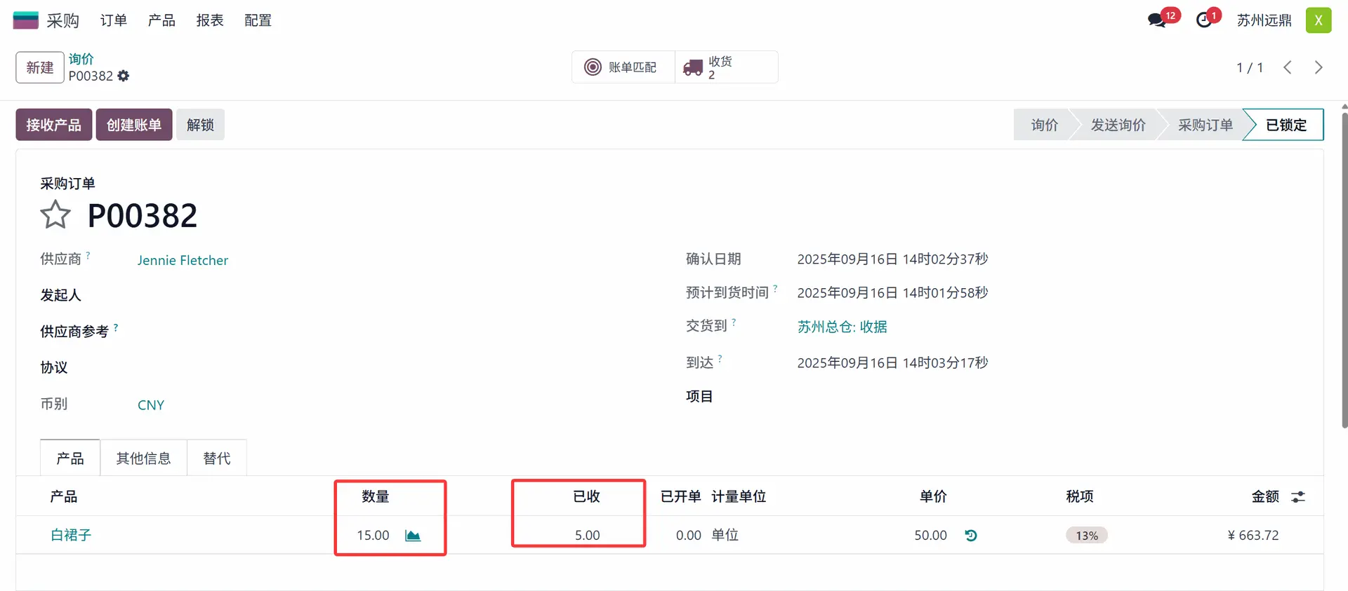 然而,无论收到多少数量,草稿账单中仍将显示订购数量。
