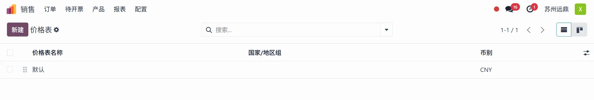 单击“价格表”子菜单,可以获取已配置的所有价格表的列表视图。