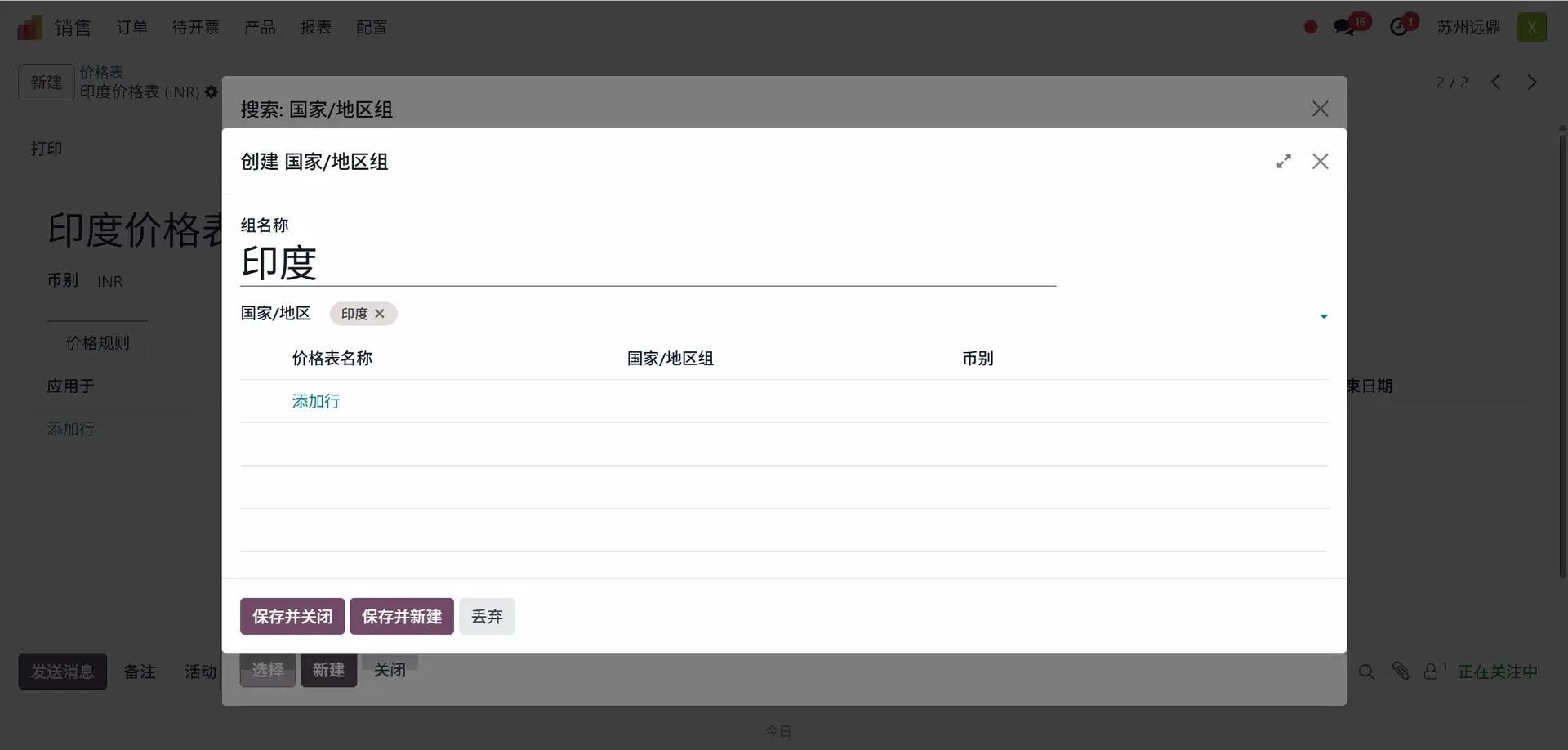 • 简化跨国销售流程:通过 “国家组 + 价目表 + 货币” 的自动匹配,无需为每个跨国客户手动调整定价与货币,提升销售效率。
