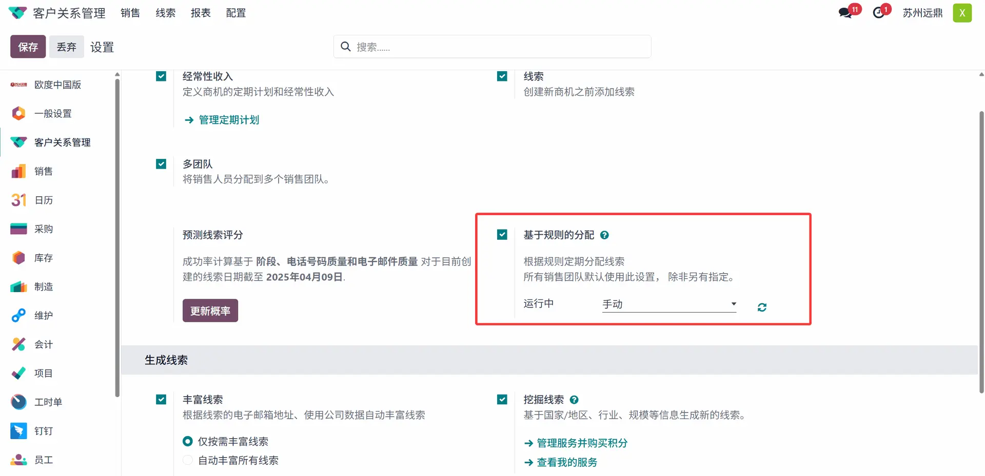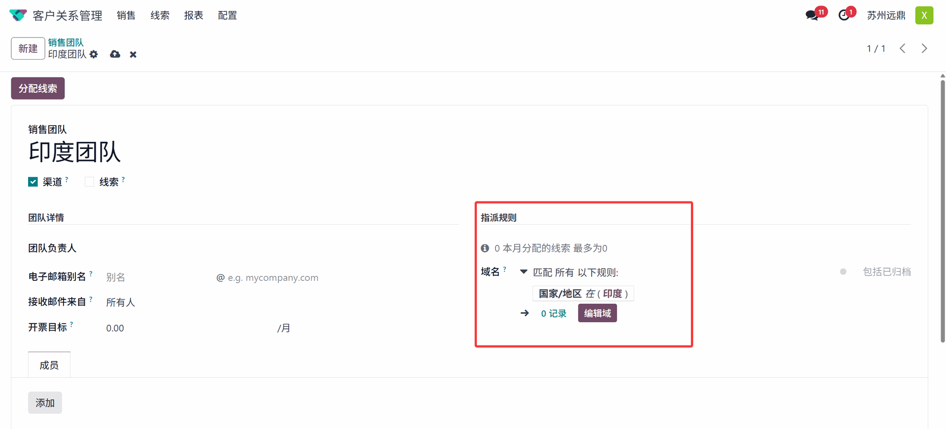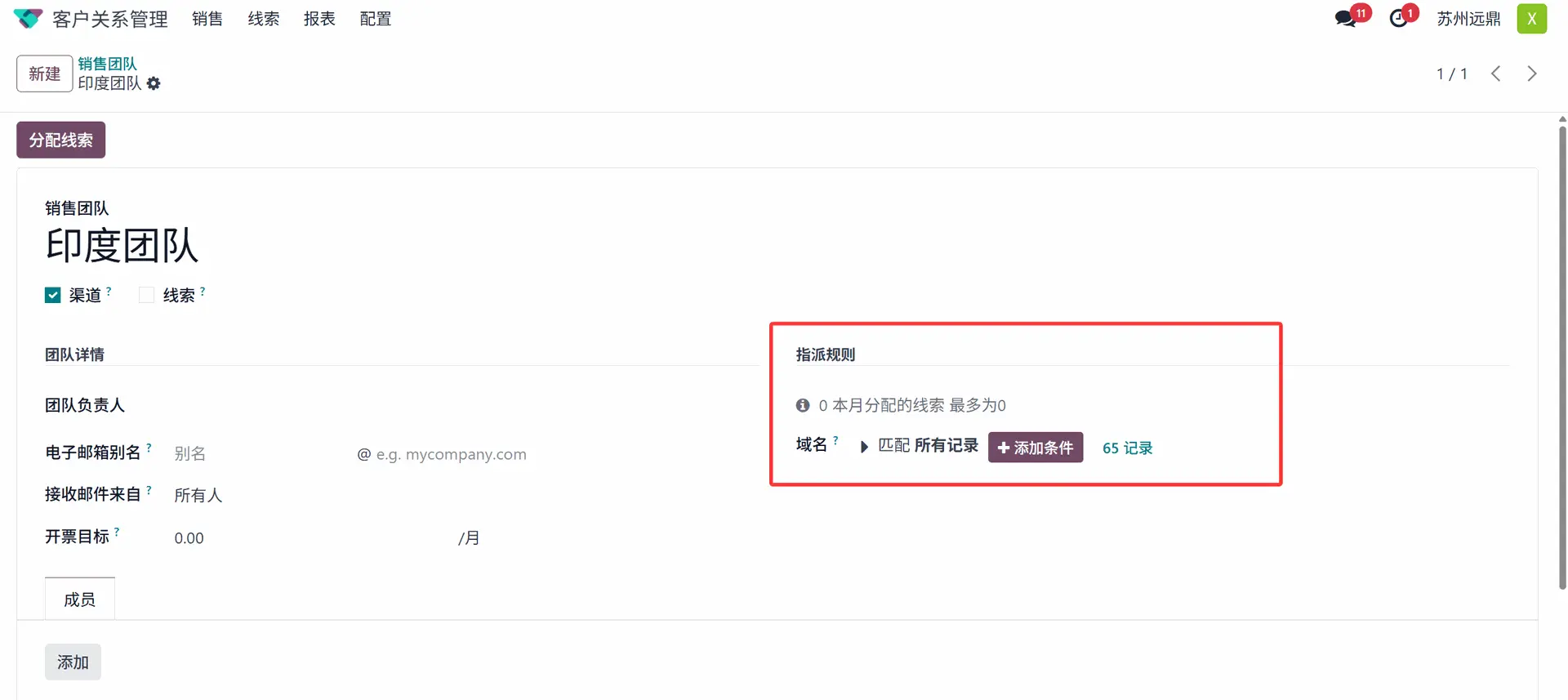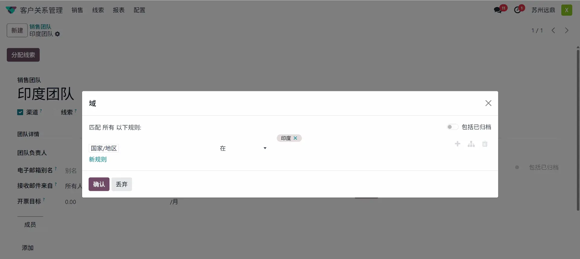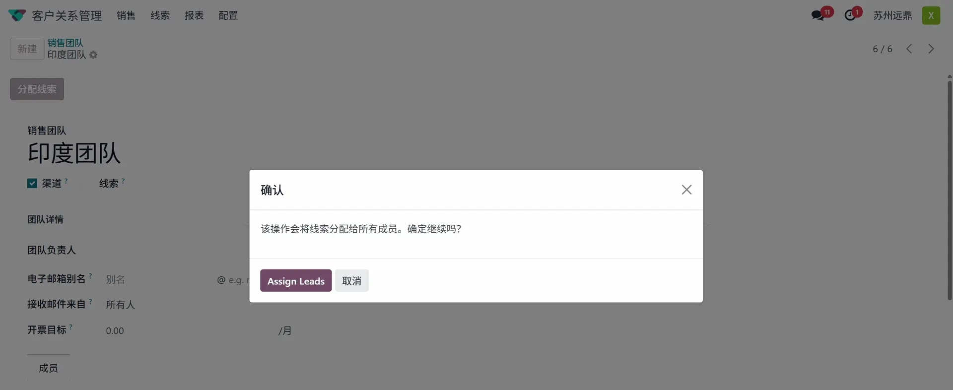 如何在 Odoo CRM 自动销售人员与销售团队线索分配
