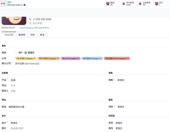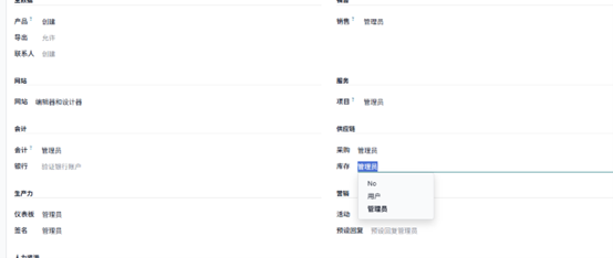 在库存权限中选择管理员权限,此处为 Mitchell Admin 分配了管理员权限。