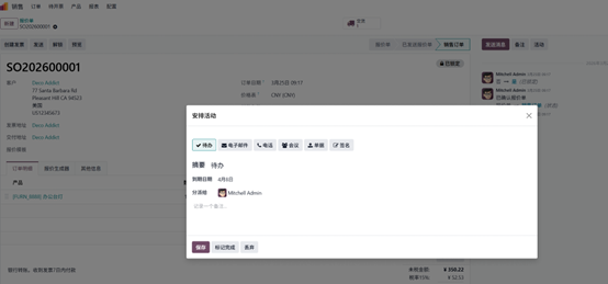 Odoo中的活动,是具备以下属性的待办事项: