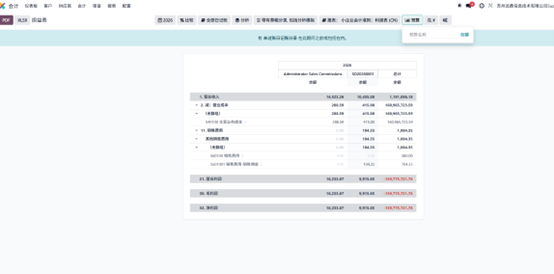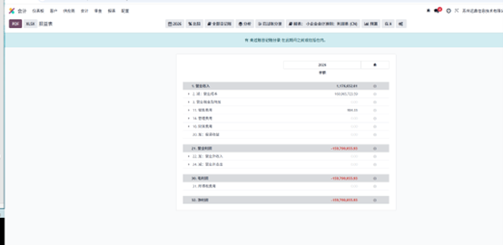 Odoo 19 的利润表采用结构化、分类化的展示格式: